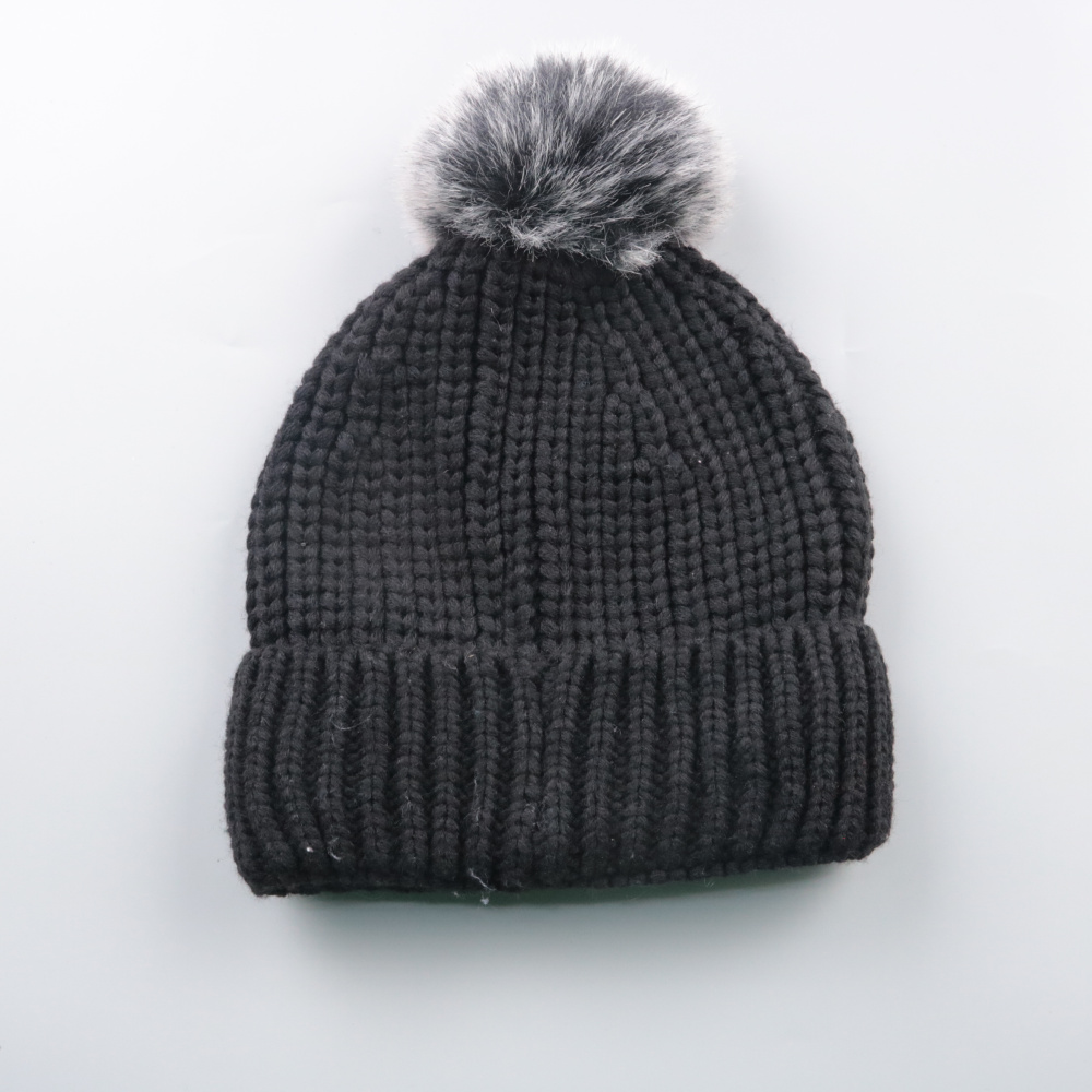 Вязаная шапка M&S чёрного цвета с отворотом и помпоном. Подойдёт для холодной погоды и повседневной носки, хорошо сочетается с пуховиком или пальто. Плотная вязка помогает лучше сохранять тепло и защищает от ветра.