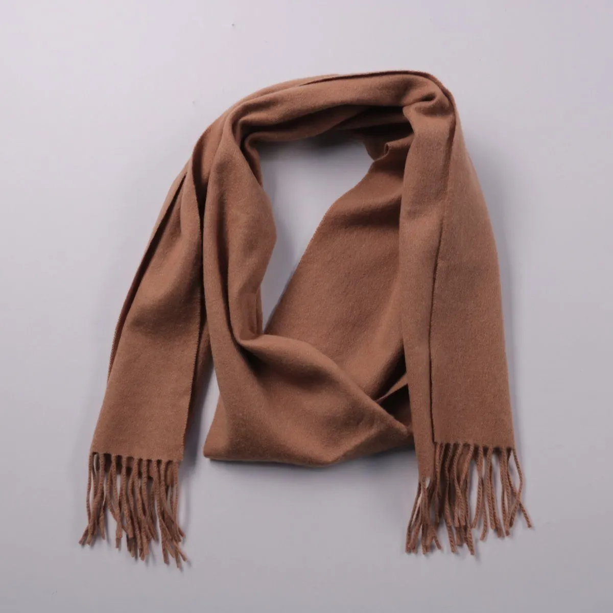 Шарф без бренда, однотонный коричневый с бахромой на концах. Подойдёт для повседневных образов в прохладную погоду и в межсезонье, легко сочетается с пальто и куртками. Мягкая ткань комфортно укрывает шею и хорошо держит тепло.