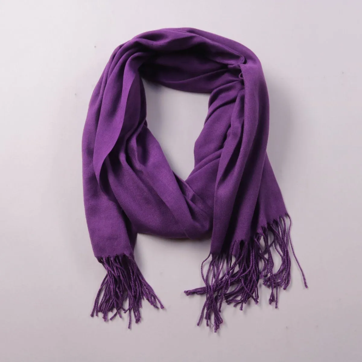 Шарф-пашмина Birel фиолетового цвета с бахромой по краям. Подойдёт для прохладной погоды и как акцент к базовым образам. Мягкая ткань хорошо драпируется и компактно складывается.