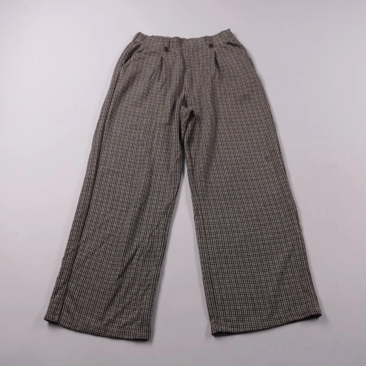 Детские брюки в мелкую клетку, прямого свободного кроя с эластичным поясом и складками спереди. Подойдут для школы и повседневной носки в прохладную погоду. Пояс на резинке помогает комфортно регулировать посадку.