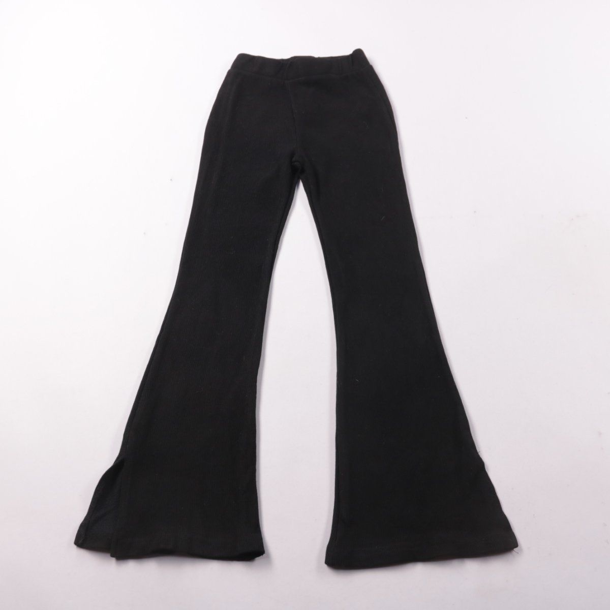 Черные брюки HEMA из мягкого эластичного трикотажа с клешем книзу и поясом на резинке. Подойдут девочке на рост 122–128 см для школы или прогулок в прохладную погоду и в помещении. Ткань хорошо тянется и не стесняет движений.
