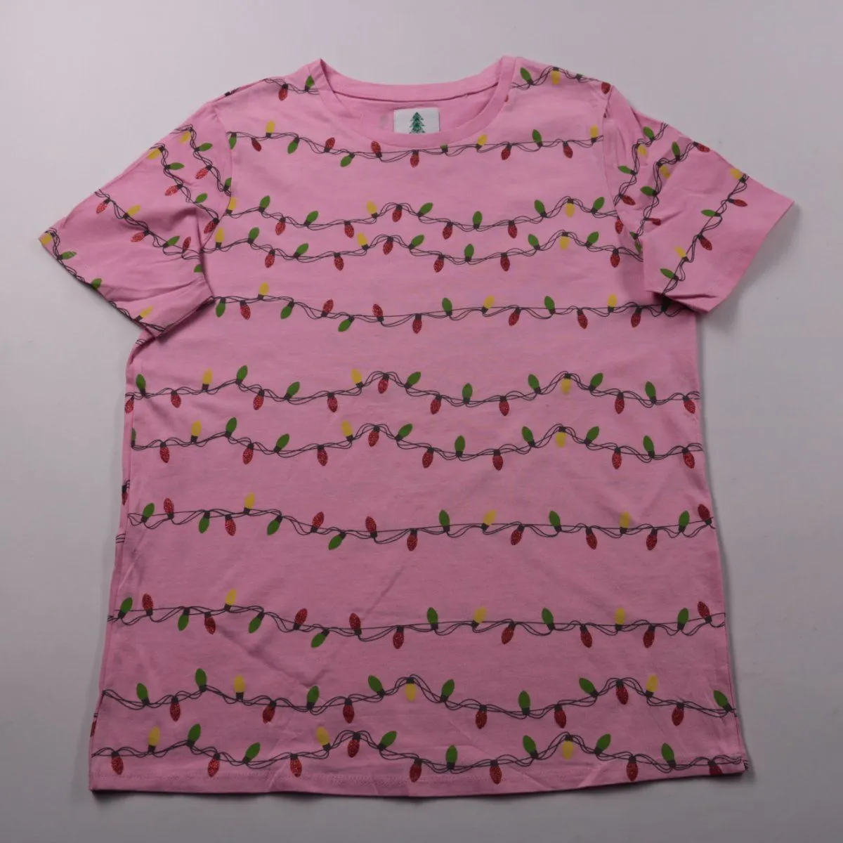 Футболка George розового цвета с принтом в виде гирлянды огоньков по всей поверхности. Подойдёт для повседневной носки и прогулок в тёплую погоду. Лёгкий хлопковый материал хорошо пропускает воздух и комфортен к телу.