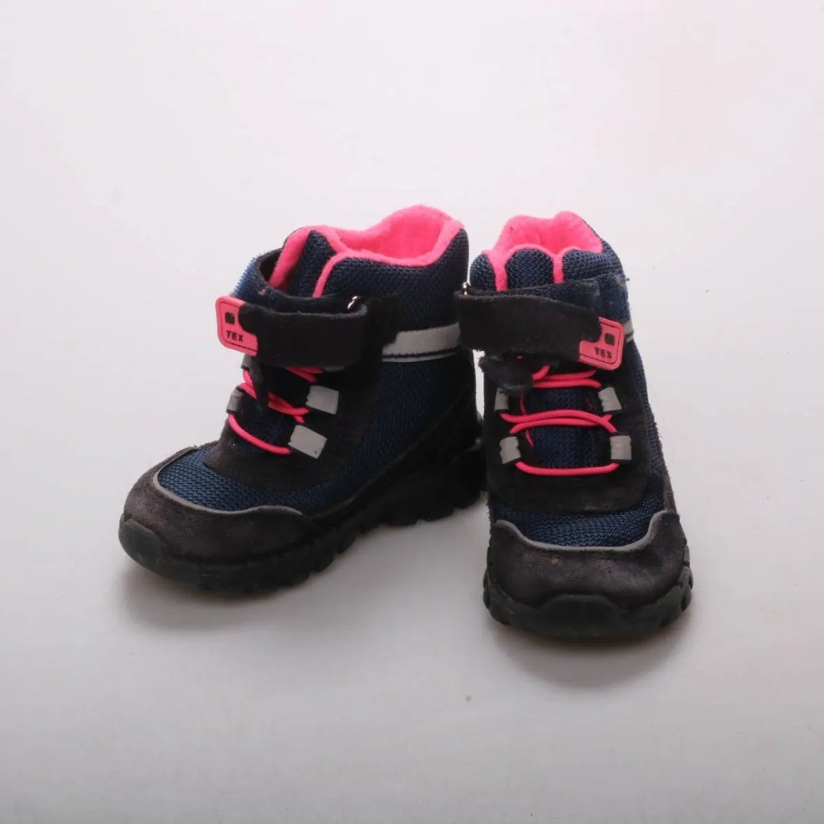Детские зимние полусапоги Elefanten в синем цвете с розовой утеплённой подкладкой и застёжкой на липучке. Подойдут для прогулок в холодную погоду, есть светоотражающие вставки. Толстая рельефная подошва помогает увереннее ходить по скользкой поверхности.
