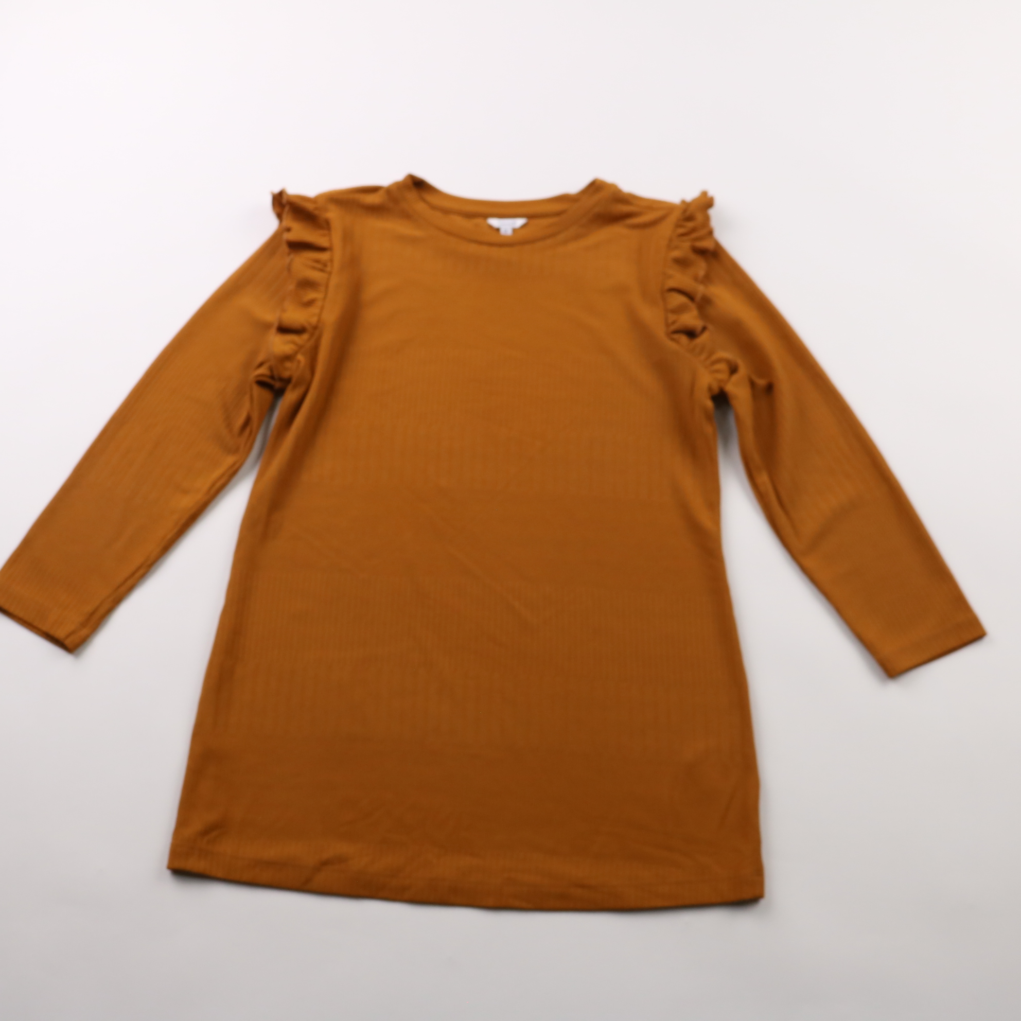 Платье Prénatal горчичного цвета из трикотажа в рубчик, с длинным рукавом и аккуратными рюшами на плечах. Подойдёт для садика, школы или прогулок в прохладную погоду, хорошо смотрится с колготками и кардиганом. Материал тянется и не сковывает движения,...