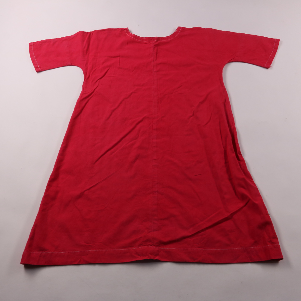 Детское платье простого кроя без бренда, красного цвета, с короткими рукавами. Подойдёт для лета и тёплой погоды в садик или на прогулку. Лёгкая ткань и свободный силуэт не стесняют движений.