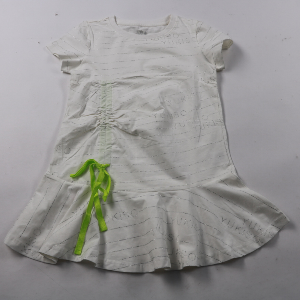 Детское платье Yukiso белого цвета с коротким рукавом и лёгким расклёшенным низом, есть кулиска со шнурком салатового цвета. Подойдёт для лета и тёплой погоды, на прогулки и повседневную носку. Хлопковая ткань приятная к телу и хорошо пропускает воздух.