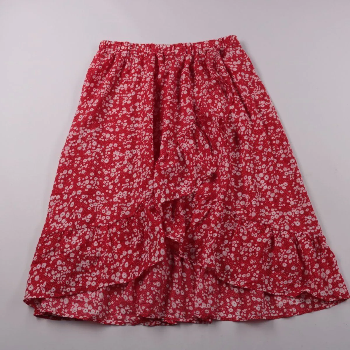 Юбка SHEIN Girl красного цвета с мелким белым цветочным принтом и эластичным поясом. Подойдёт для лета и тёплой весны/осени, на прогулки и повседневную носку. Лёгкий полиэстер быстро сохнет и почти не мнётся.