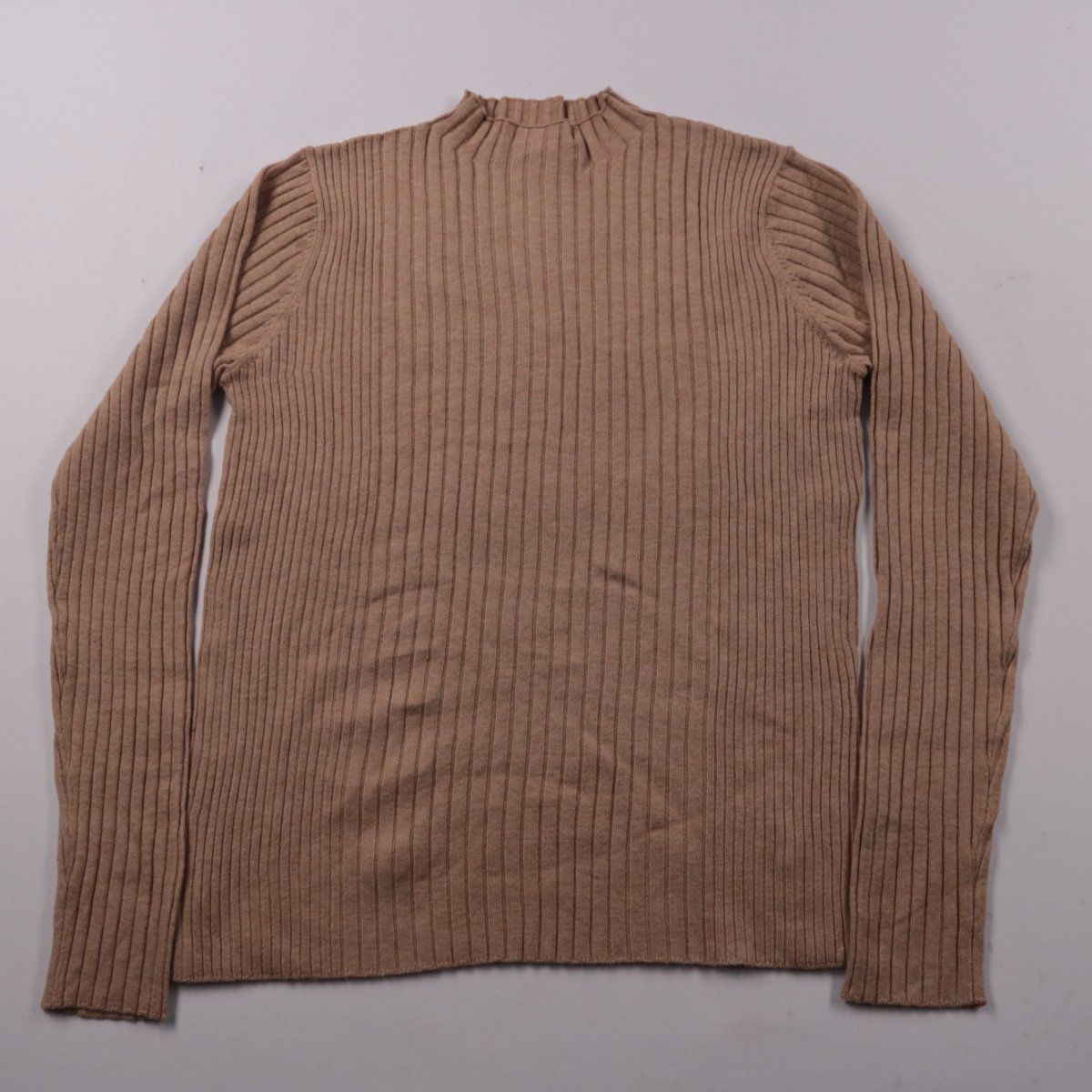 Вязаная водолазка George в рубчик с высоким воротником, цвет tan (бежевый). Подойдёт для школы и повседневной носки в прохладную погоду, хорошо сочетается с юбкой или джинсами. Практичный плюс — плотная синтетическая пряжа меньше мнётся и быстро сохнет после стирки.