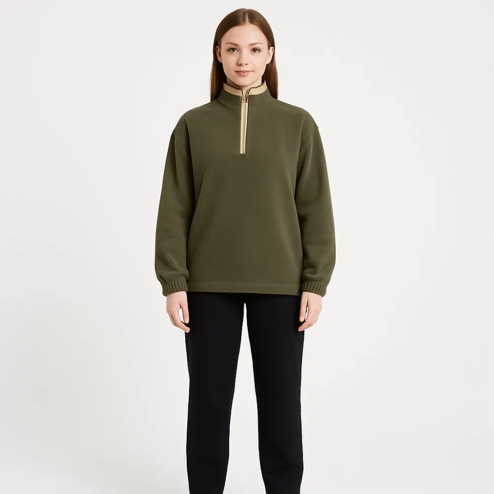 Толстовка Cs Active цвета хаки с воротником-стойкой и короткой молнией. Подойдёт для школы, прогулок и активного отдыха как второй слой в прохладную погоду. Практичный полиэстер быстро сохнет и не требует сложного ухода.