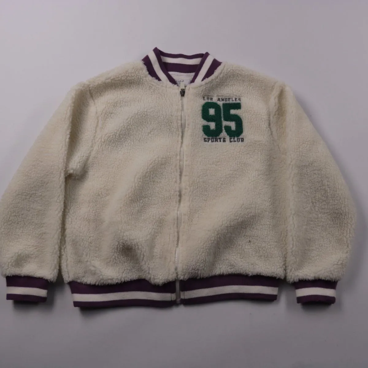 Куртка Primark из мягкого флиса, молочного цвета, на молнии с трикотажными манжетами и поясом. Подойдёт для прогулок и школы в прохладную погоду как лёгкий верхний слой. Материал быстро сохнет и прост в уходе.