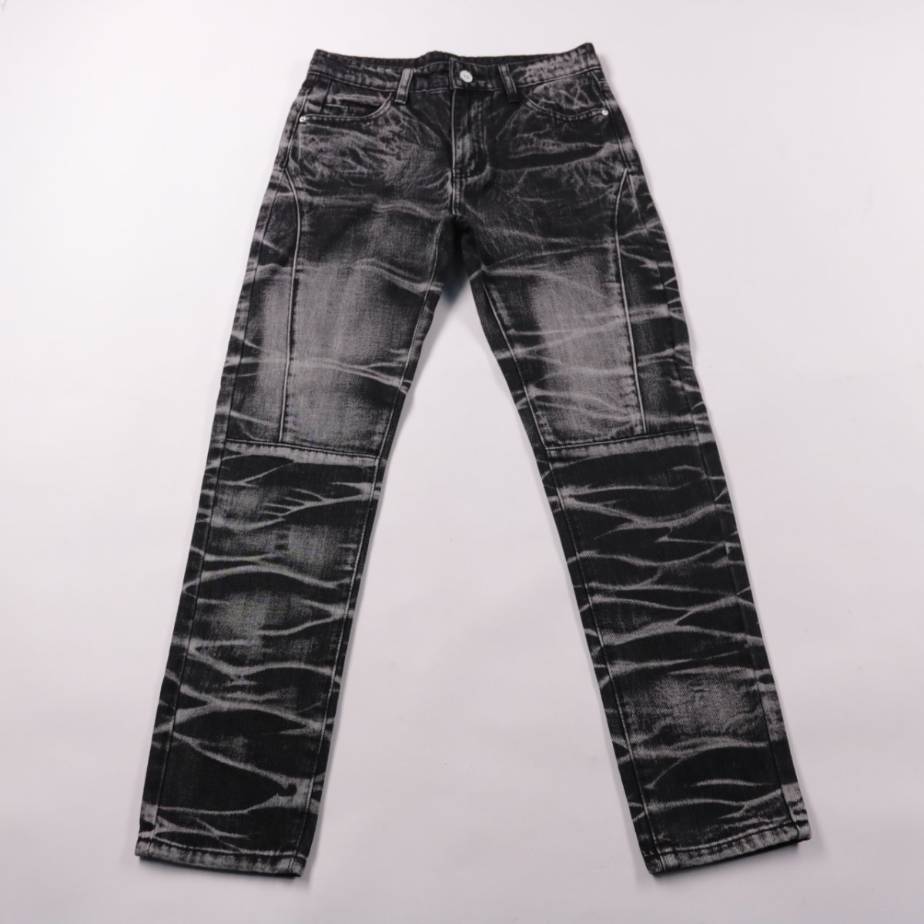 Джинсы для мальчика в чёрно-сером цвете с эффектом варки и декоративными швами. Подойдут для повседневной носки в школу и на прогулки. Плотный материал из хлопка с добавлением полиэстера износостойкий и хорошо держит форму.