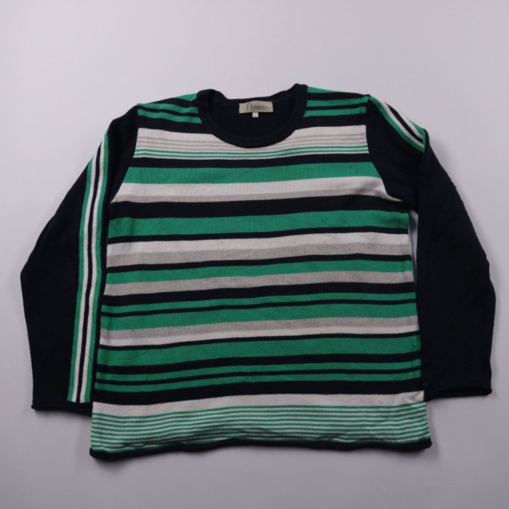 Свитер Leara для мальчика в полоску (чёрный, зелёный и белый) с круглым вырезом. Подойдёт для школы и прогулок в прохладную погоду, удобно носить как второй слой. Материал мягкий и неприхотливый в уходе, хорошо держит форму.