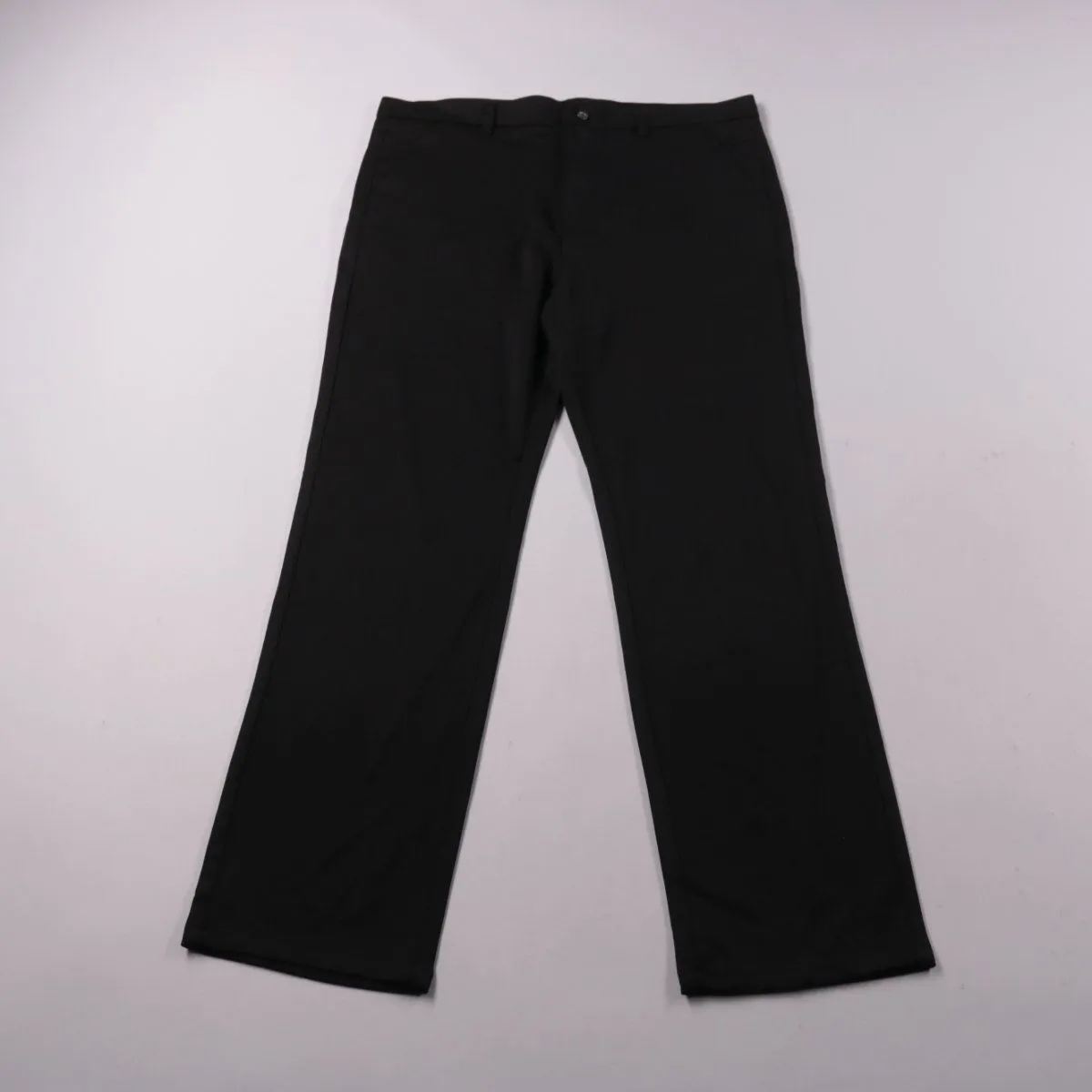 Мужские классические брюки чёрного цвета без указания бренда. Подойдут для офиса и повседневных образов благодаря прямому крою и лаконичному дизайну. Практичный плюс — ткань с эластаном, поэтому брюки лучше тянутся и комфортнее в носке.