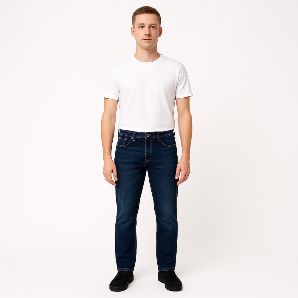 Джинсы Script из тёмно-синего денима с классической посадкой и ровной линией штанины. Подойдут на каждый день и для офиса в стиле casual, хорошо сочетаются с футболкой, рубашкой или свитером. Материал со стрейчем немного тянется и комфортнее сидит в дв...