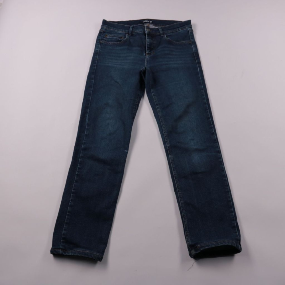 Джинсы Angels из денима синего цвета, классическая посадка и прямые штанины. Подойдут на каждый день и для офиса в casual-стиле, хорошо сочетаются с футболками и рубашками. Практичный плюс — ткань с эластаном немного тянется и комфортна в движении.