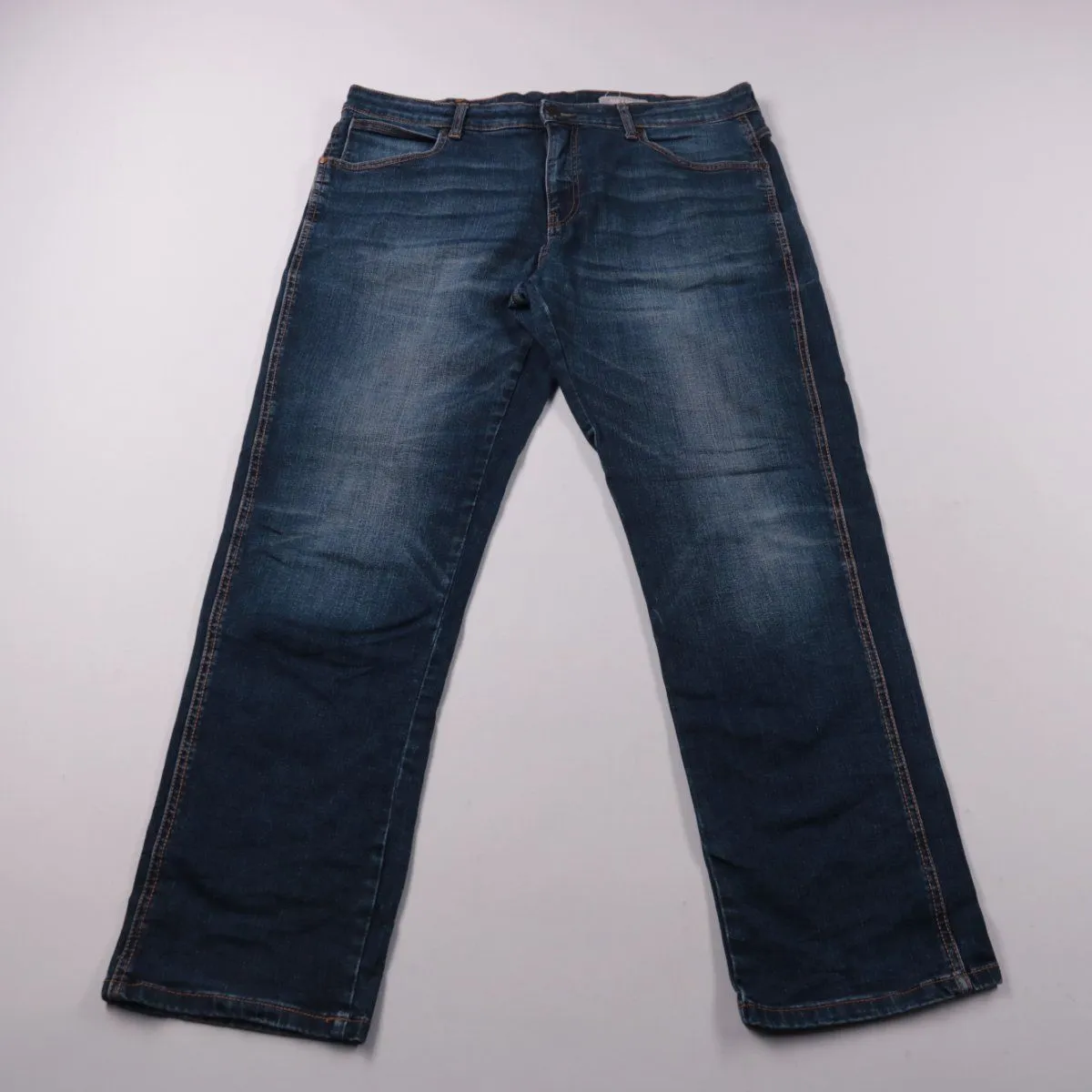 Мужские джинсы Multiblu Regular Classic из синего денима с лёгким эффектом потертости. Подойдут для повседневной носки и города, хорошо сочетаются с футболками и рубашками. Благодаря добавлению эластана ткань чуть тянется и удобнее в движении.