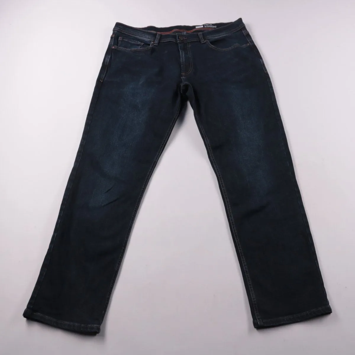 Мужские джинсы F&F прямого кроя в тёмно-синем цвете. Подойдут для повседневной носки и офисного casual, хорошо сочетаются с кедами и ботинками. Плотный деним практичен и износостойкий.