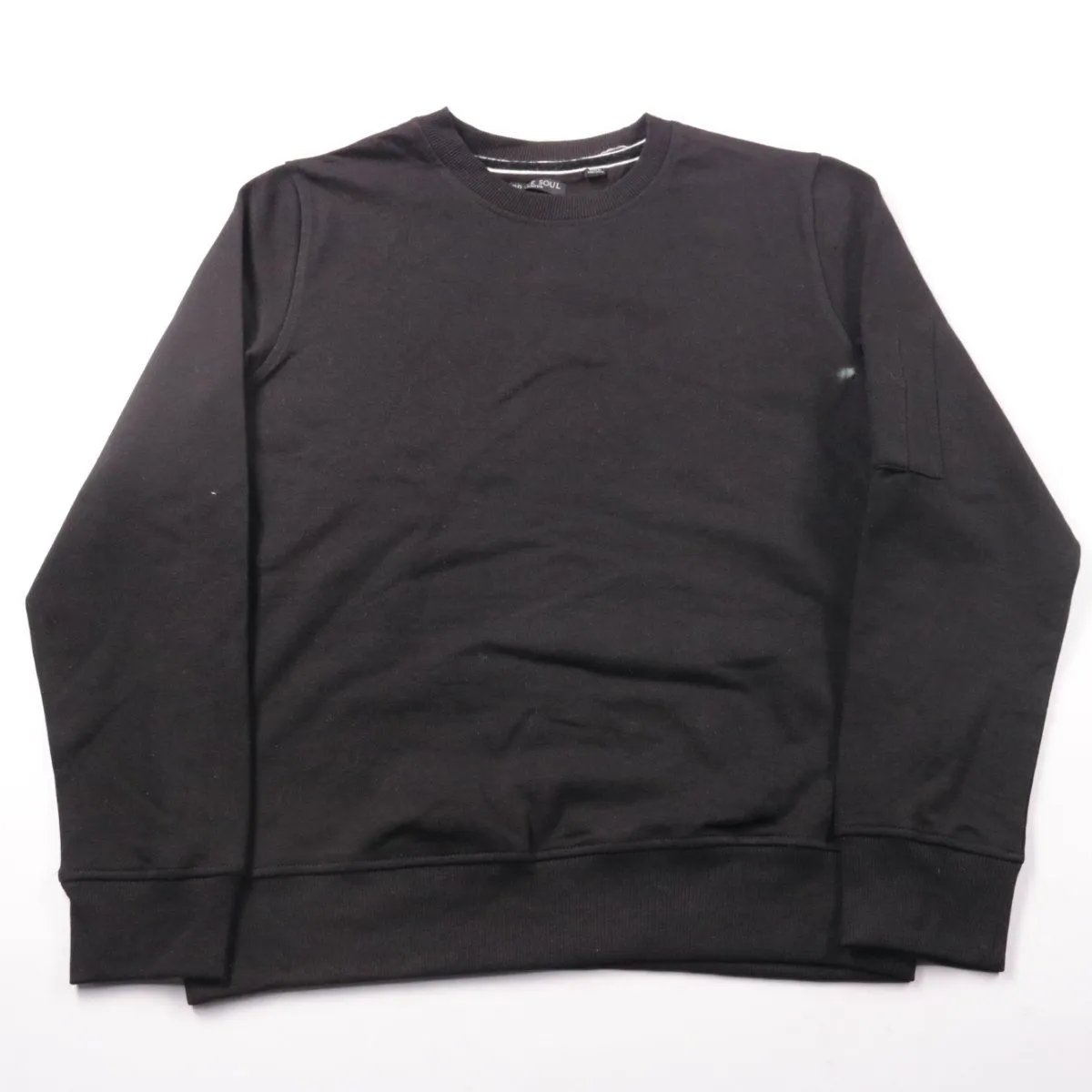Мужской свитшот Brave Soul London в базовом чёрном цвете с круглым вырезом и манжетами. Подойдёт для повседневной носки и слоя под куртку в прохладную погоду. Ткань с высоким содержанием хлопка приятна к телу и проста в уходе.