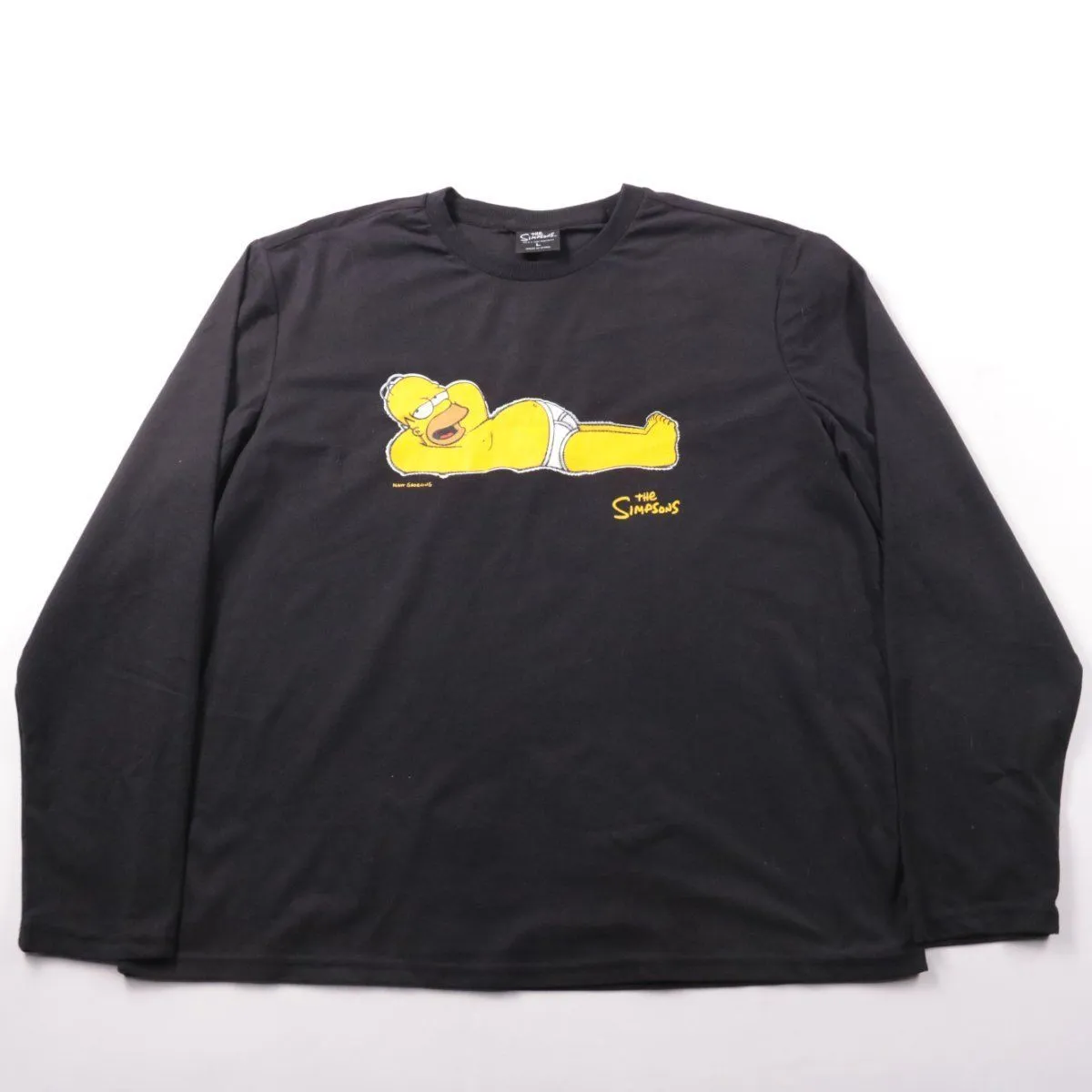 Лонгслив The Simpsons чёрного цвета с принтом Гомера Симпсона на груди. Подойдёт для повседневной носки и образов в стиле casual/стрит. Практичный материал легко стирается и быстро сохнет.
