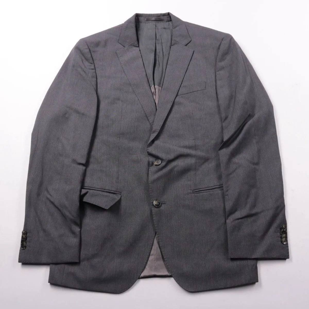 Мужской пиджак Boss (Hugo Boss) серого цвета, классический однобортный на двух пуговицах. Подойдёт для офиса, деловых встреч и торжественных мероприятий, легко сочетается с рубашками и брюками разных оттенков. Практичный вариант: нейтральный цвет и лаконичный крой уместны в большинстве ситуаций.
