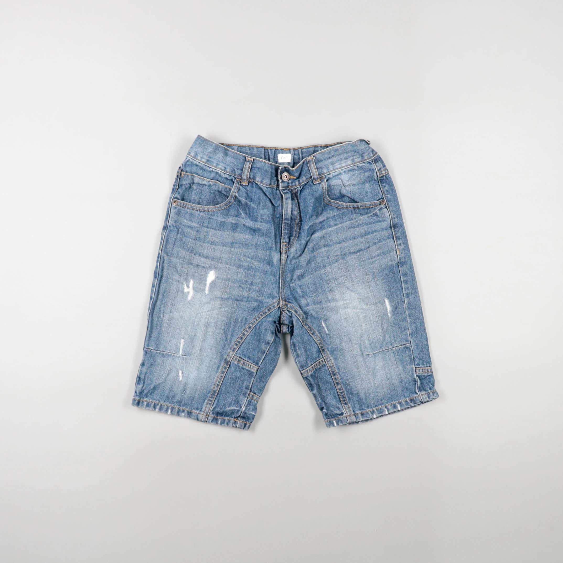 Джинсовые шорты из денима с эффектом потёртости и декоративными “брызгами” краски. Подойдут для повседневных летних образов с футболками и кедами. Плотная ткань хорошо держит форму и не требует сложного ухода.
