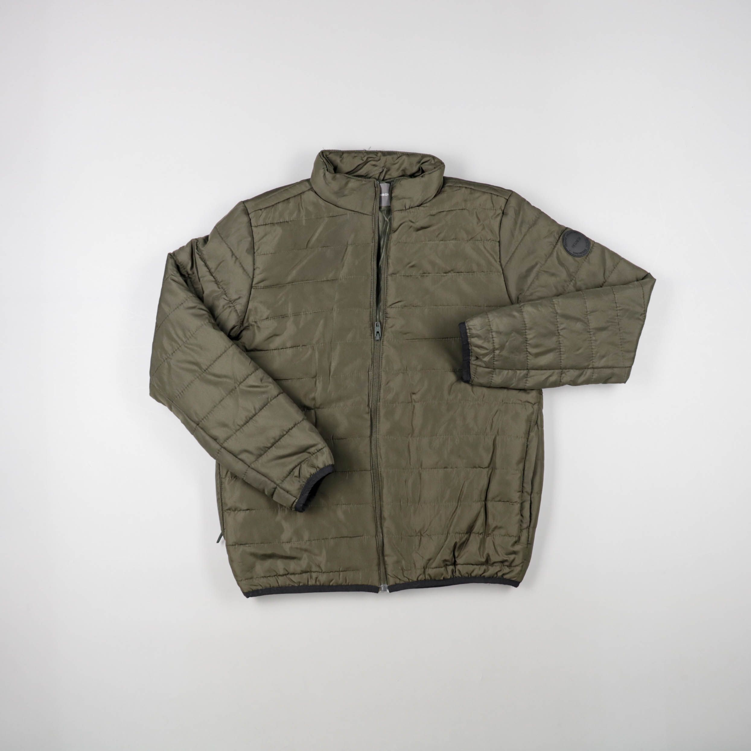 Стёганая мужская куртка в цвете хаки со стойкой и застёжкой на молнию. Подойдёт для повседневной носки в межсезонье и прохладные дни, легко сочетается с джинсами и брюками. Практичный плюс — лёгкий утеплитель и удобная посадка без лишнего объёма.