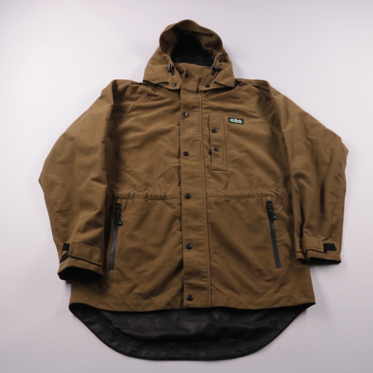 Мужская куртка Ridgeline (Outdoor Clothing) в цвете хаки/коричневый, с капюшоном и удлинённой спинкой. Подойдёт для прогулок и активного отдыха в прохладную погоду, есть карманы на молниях и регулируемые манжеты. Практична за счёт ветрозащитной ткани и удобной посадки.