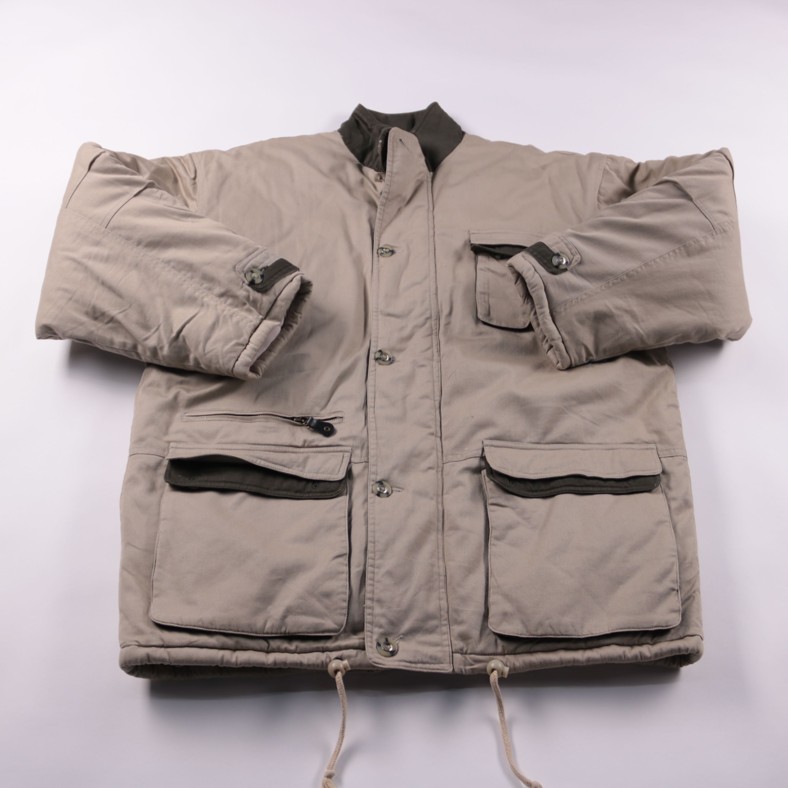 Мужская утеплённая куртка Biston бежевого цвета с высоким воротником и удобными карманами с клапанами. Подойдёт для зимних прогулок и повседневной носки в городе. Практичный плюс — прочный хлопковый верх и синтетический утеплитель, который хорошо держи...
