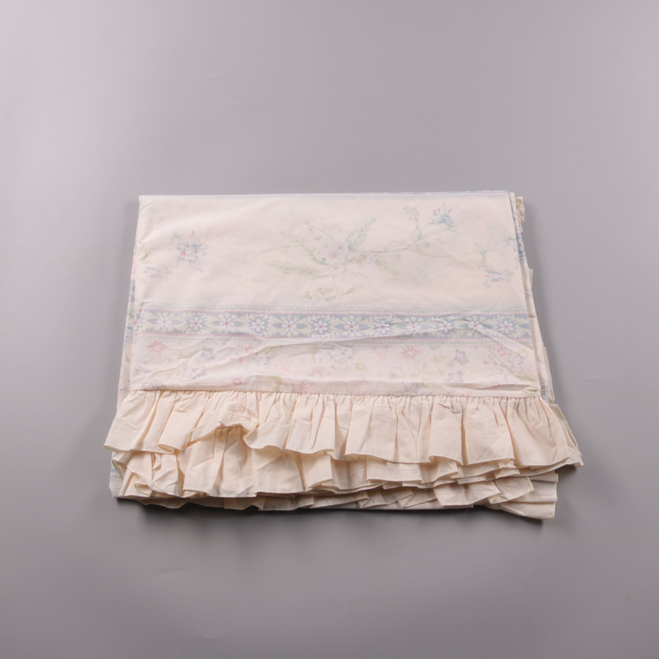 Постельное бельё с нежным цветочным принтом и декоративной оборкой по краю. Подойдёт для спальни в классическом или романтичном стиле и для дачи. Оборка добавляет объём и аккуратно скрывает край спального места.