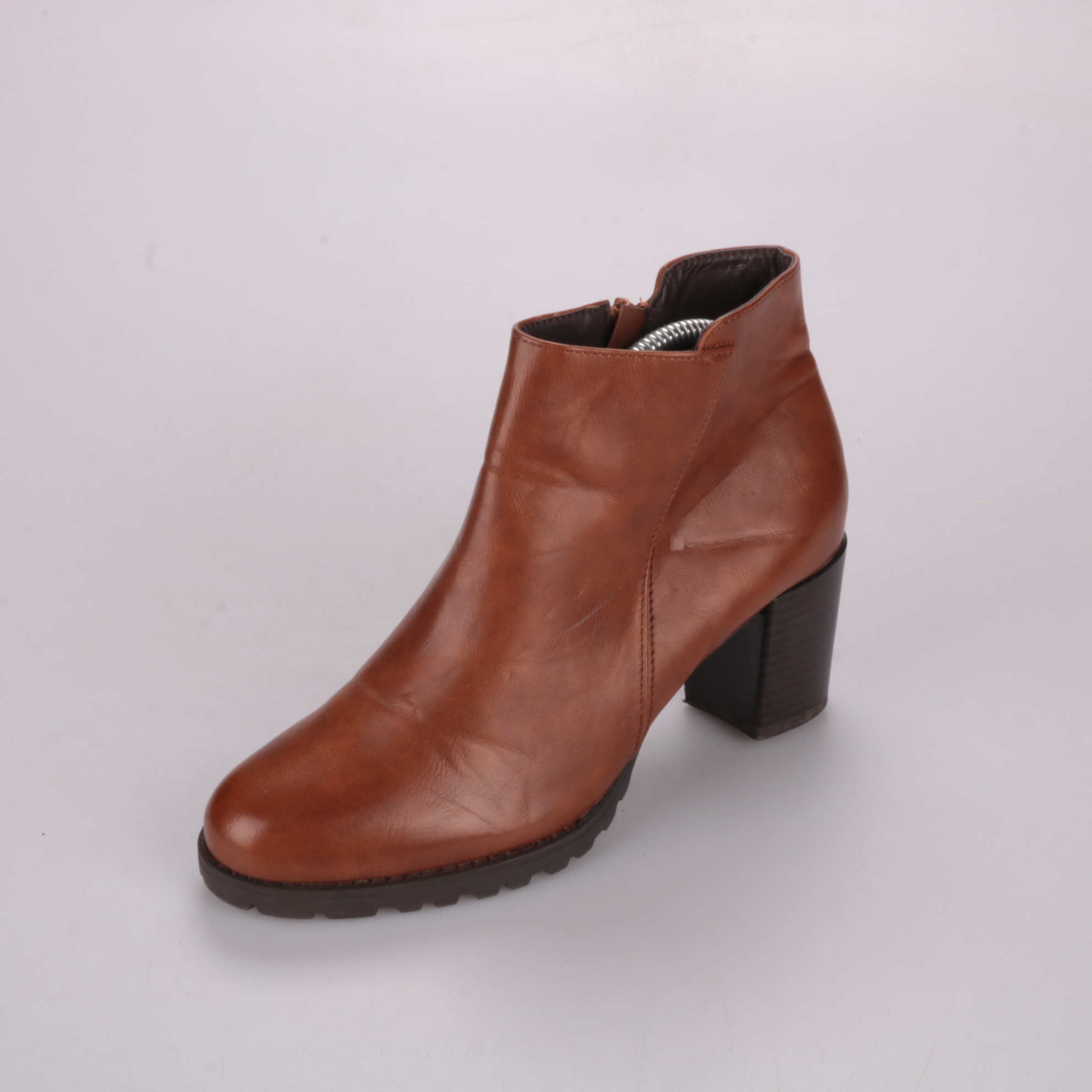Кожаные ботильоны Tamaris в коричневом цвете на устойчивом каблуке с удобной боковой молнией. Подойдут для повседневных образов в демисезон с джинсами, брюками или платьем. Рифлёная подошва даёт хорошее сцепление и меньше скользит.