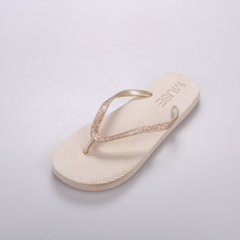 Шлёпанцы Muse бежевого цвета с блестящими перемычками, подойдут для пляжа, бассейна и прогулок в жаркую погоду. Лёгкая подошва с рельефом не скользит и быстро сохнет.
