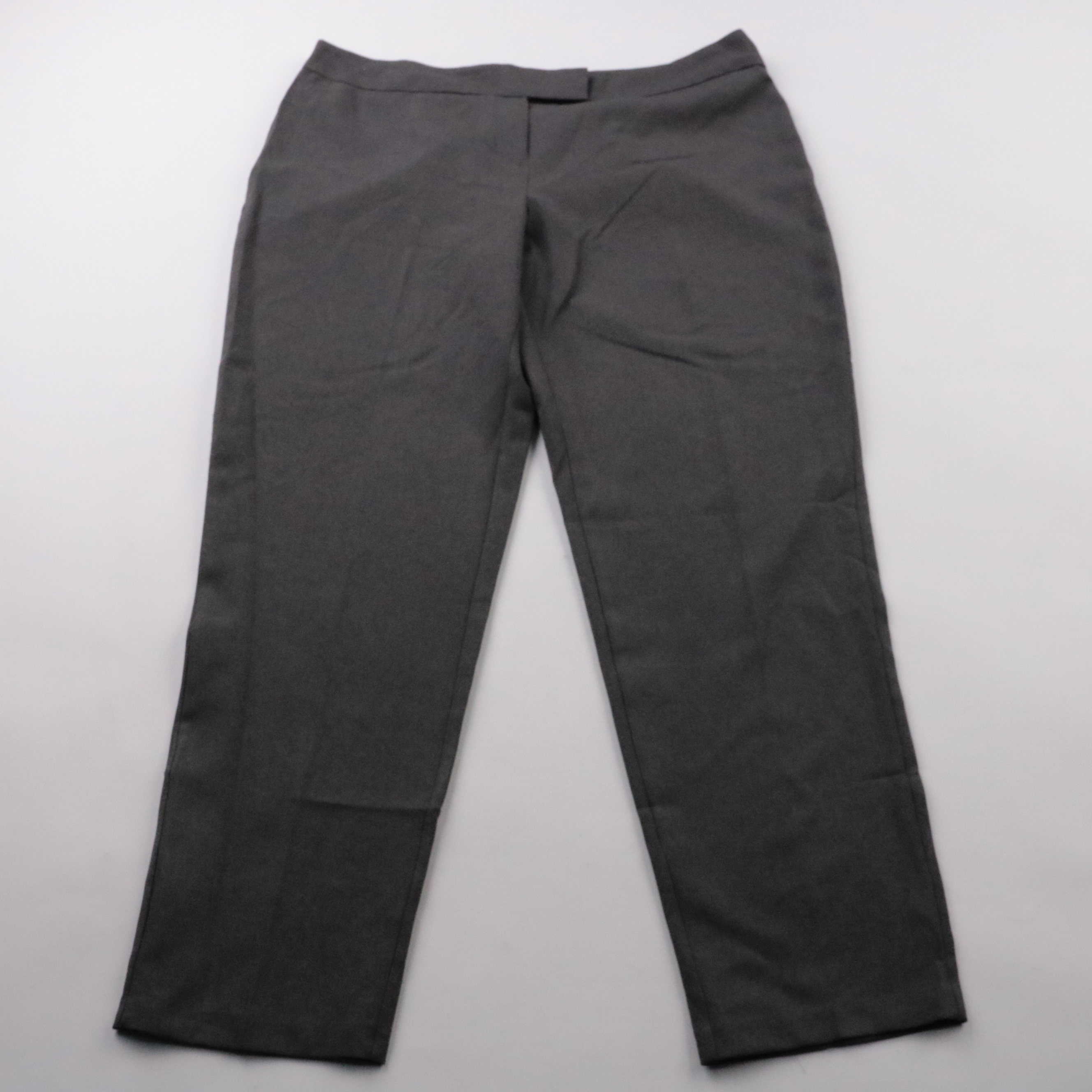 Классические прямые брюки George в тёмно-сером цвете, аккуратная посадка и гладкая ткань. Подойдут для офиса и повседневных образов с рубашкой или свитером. Материал из полиэстера практичен в уходе и меньше мнётся.