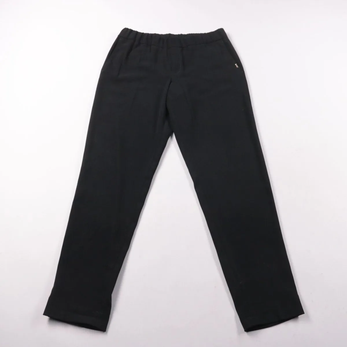Женские чёрные брюки прямого кроя на эластичном поясе, без застёжки. Подойдут для повседневных образов и офиса, легко сочетаются с блузками и джемперами. Практичный плюс — ткань с небольшим стрейчем комфортна в носке и проста в уходе.