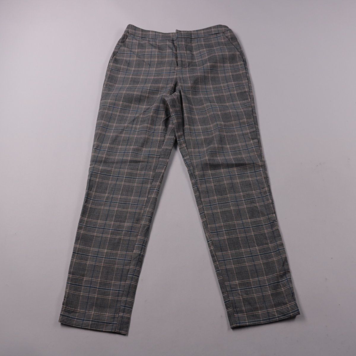 Женские брюки Stradivarius серого цвета в клетку, классическая посадка с застёжкой на молнию. Подойдут для офиса и повседневных образов с жакетом или свитером. В составе есть эластан, поэтому ткань немного тянется и комфортнее садится по фигуре.