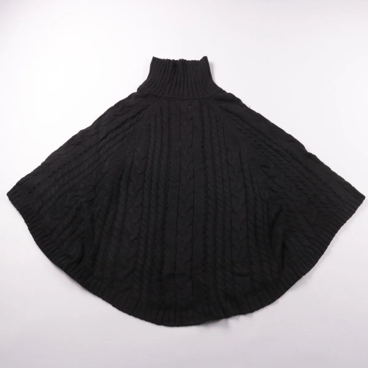 Вязаное пончо Next чёрного цвета с высоким воротником-стойкой и фактурной косичной вязкой. Подойдёт для прохладной погоды и многослойных образов поверх водолазки или лонгслива. Свободный крой не сковывает движения и удобно садится на разные типы фигуры.
