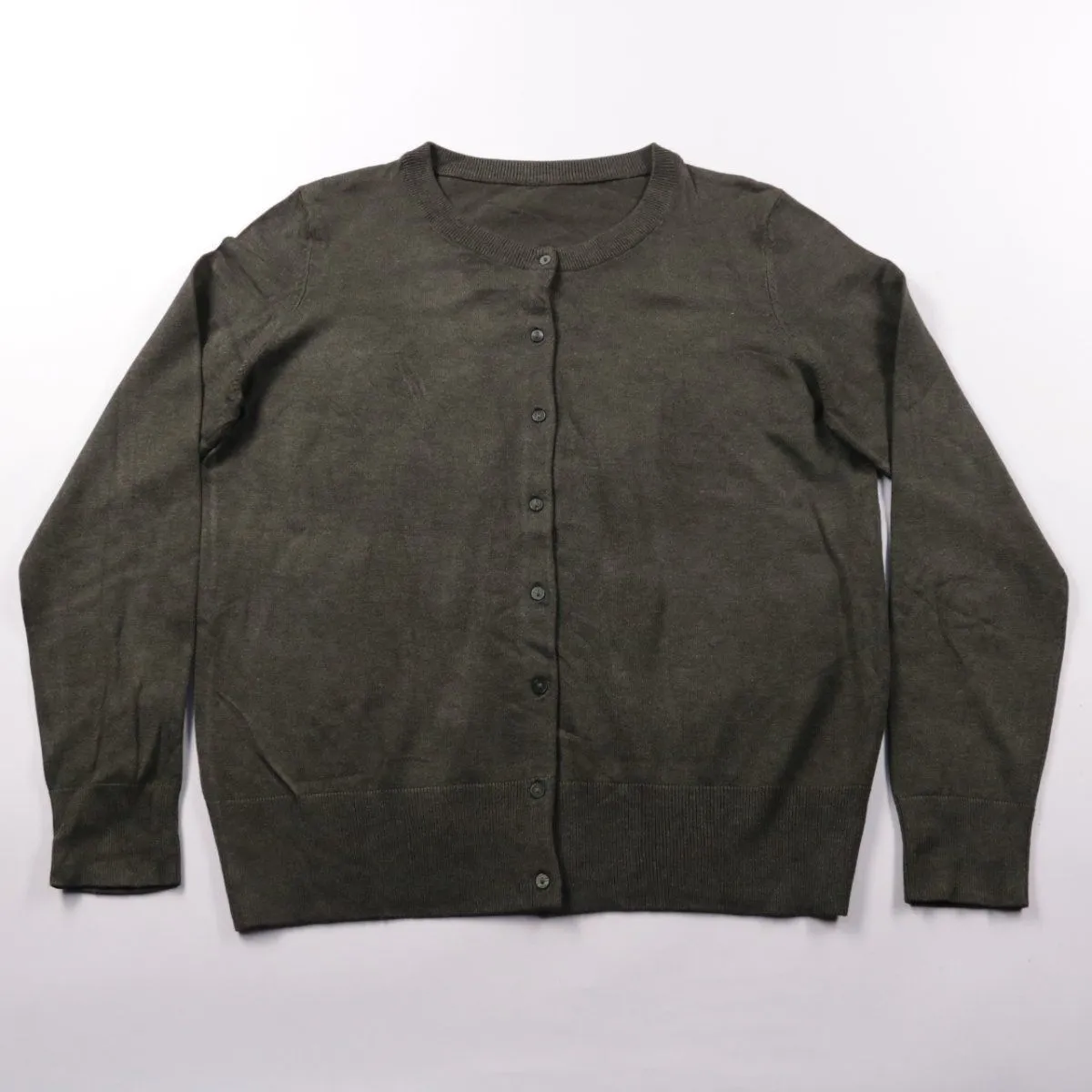Женский кардиган на пуговицах с круглым вырезом, без указанного бренда. Подойдёт для офиса и повседневных образов, удобно носить как второй слой поверх топа или рубашки. Практичный однотонный цвет легко сочетать с базовым гардеробом.