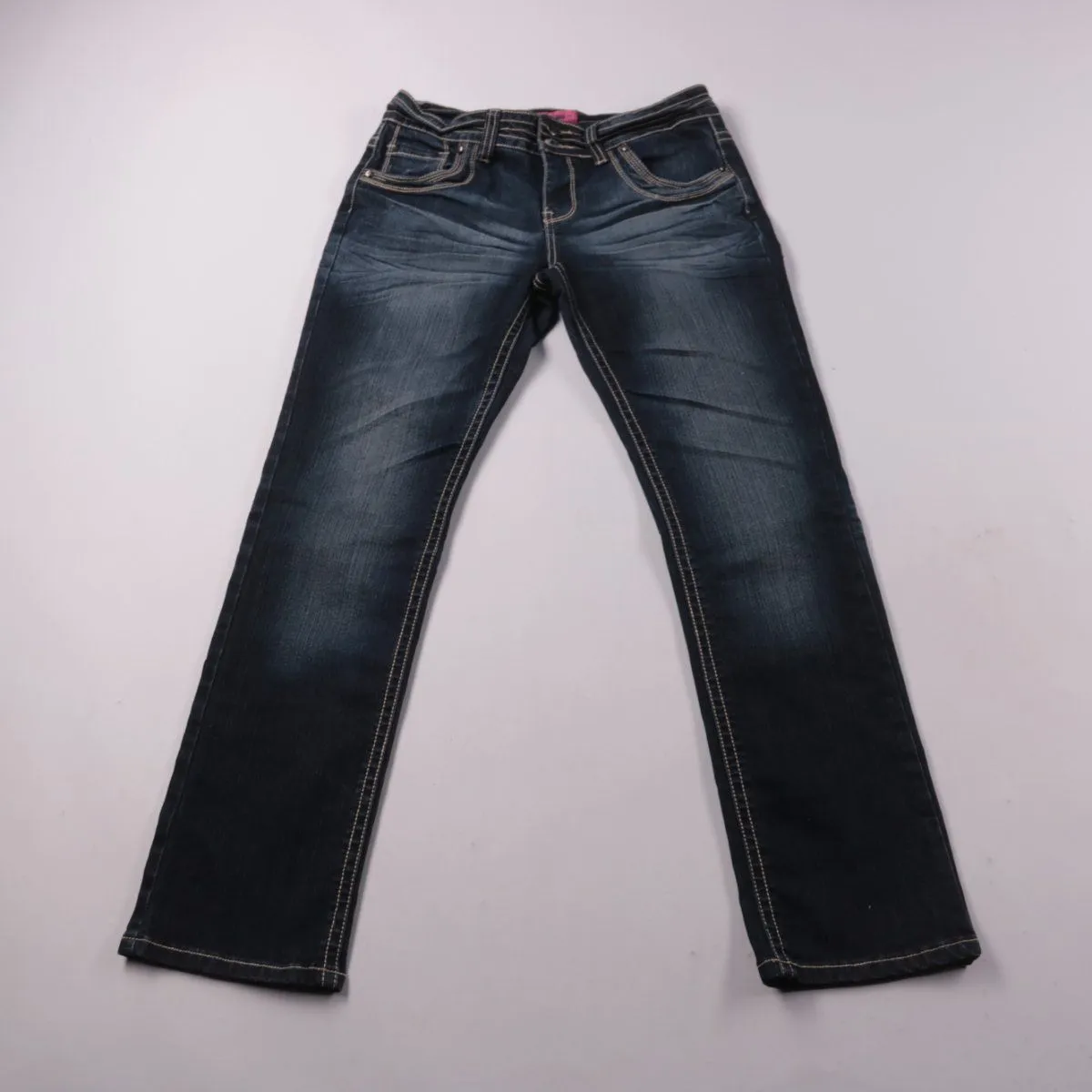 Женские джинсы mbl прямого кроя из тёмно-синего денима с контрастной строчкой и лёгким эффектом потертостей. Подойдут для повседневных образов в любое время года. В составе есть эластан, поэтому ткань немного тянется и удобна в носке.