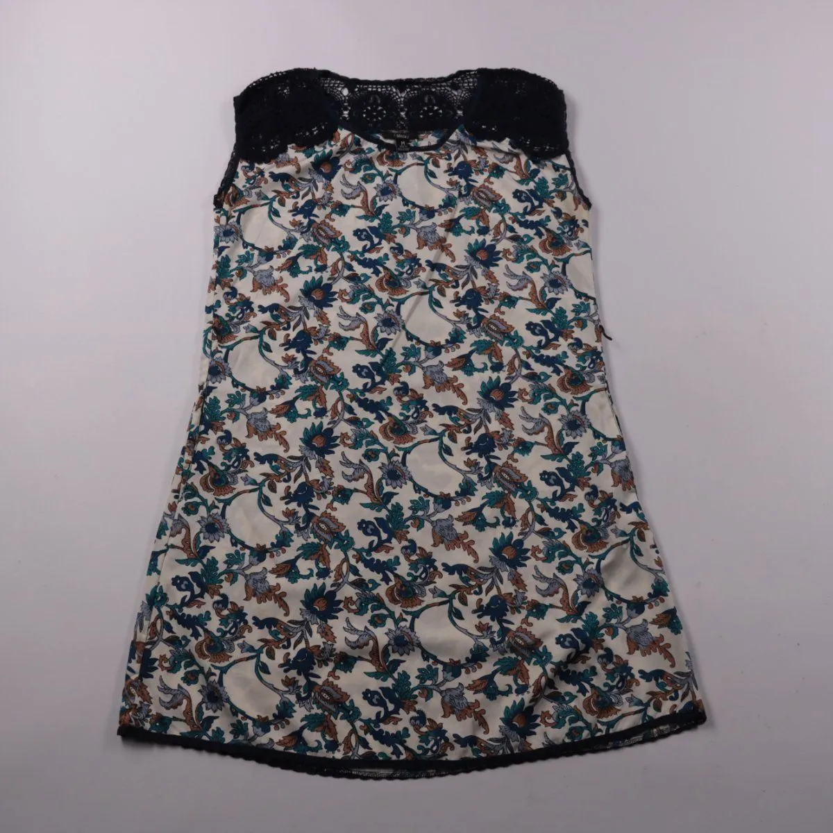 Женская сорочка Sfera с кружевной отделкой по верху и принтом в цветочный орнамент. Подойдёт для сна и дома, лёгкая и не сковывает движения. Кружево добавляет аккуратный акцент в зоне декольте.