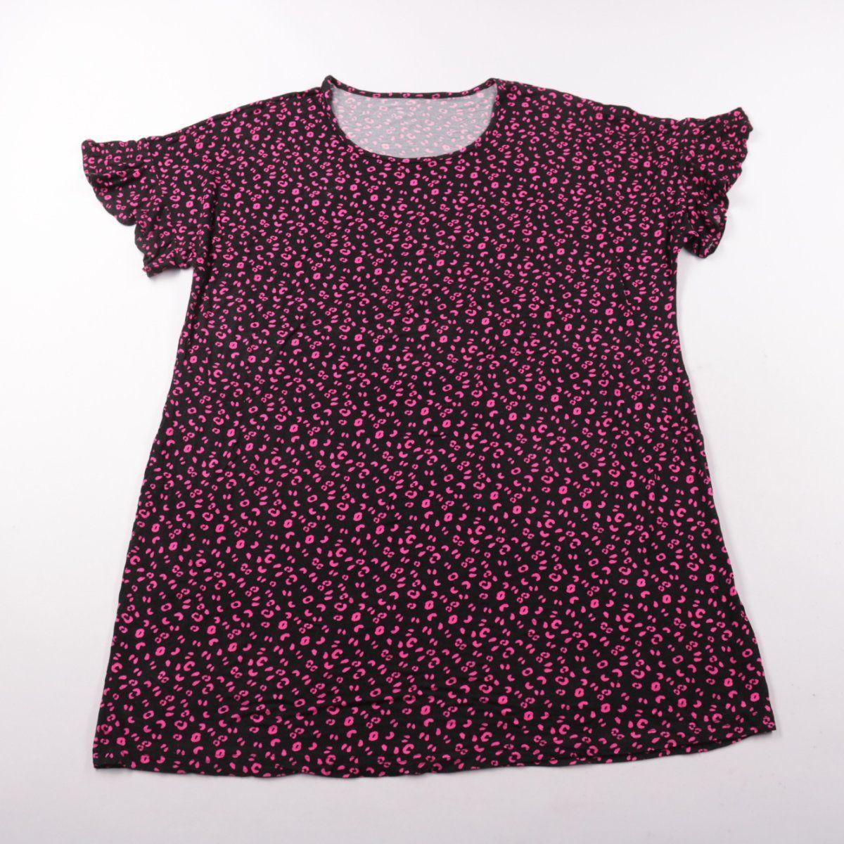 Повседневное платье George свободного кроя с короткими рукавами и круглым вырезом, чёрное с розовым принтом. Подойдёт для тёплой погоды, отдыха и повседневной носки. Трикотаж на основе вискозы мягкий и немного тянется, поэтому платье комфортно сидит.