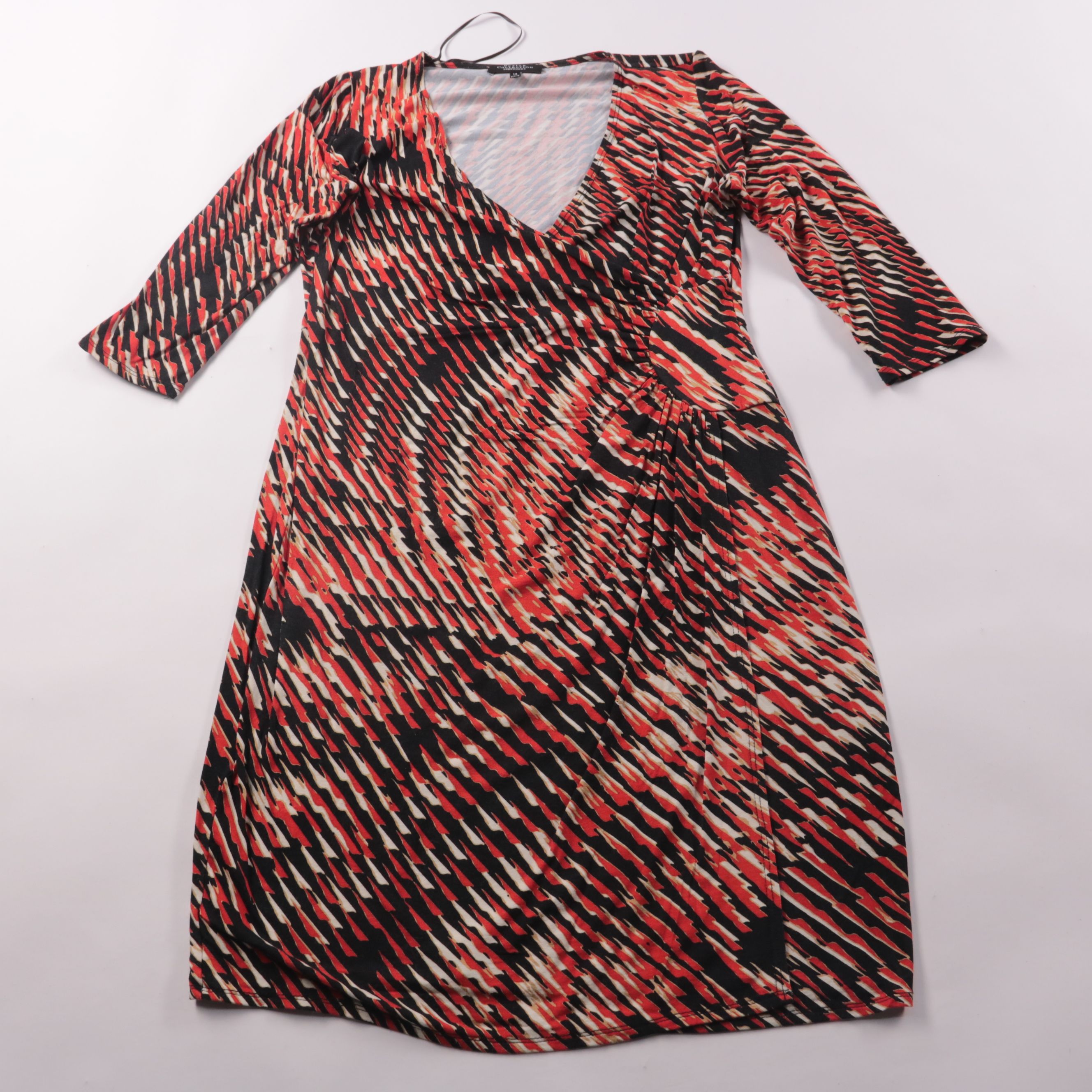 Повседневное платье Debenhams Petite Collection с V-образным вырезом и рукавом 3/4, выполнено из эластичной вискозы с абстрактным красно-чёрно-бежевым принтом. Подойдёт для офиса и на каждый день, хорошо смотрится с однотонными жакетами и кардиганами. ...