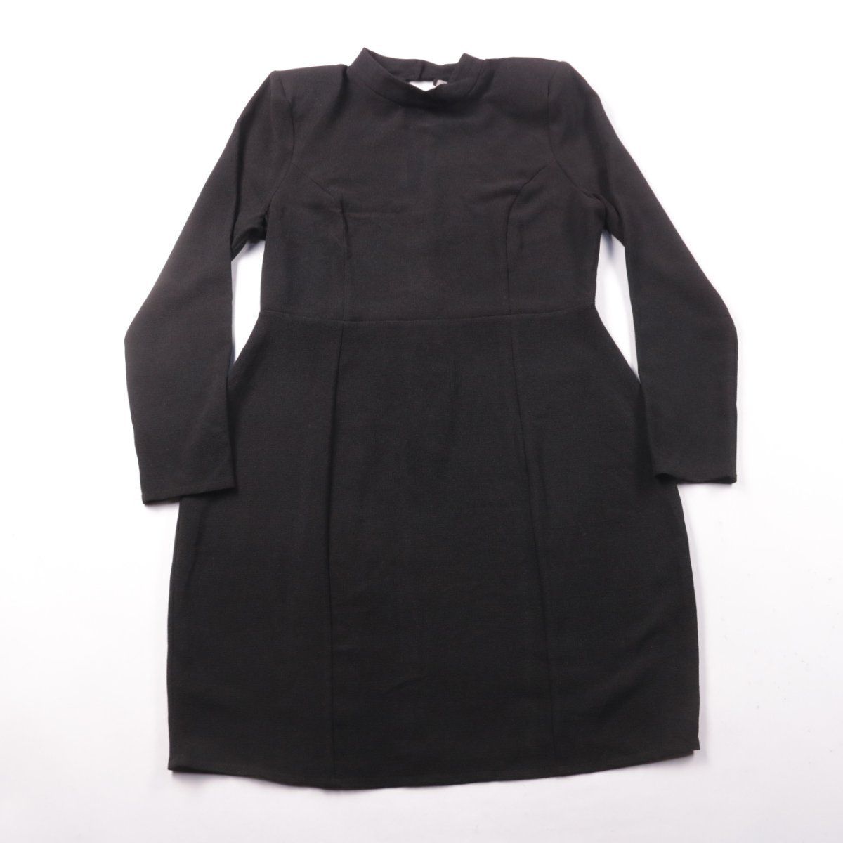Повседневное чёрное платье ASOS с длинным рукавом и воротником-стойкой, приталенного силуэта. Подойдёт для офиса и на выход, легко сочетается с жакетом и обувью на каблуке. Ткань с эластаном немного тянется и лучше держит форму.