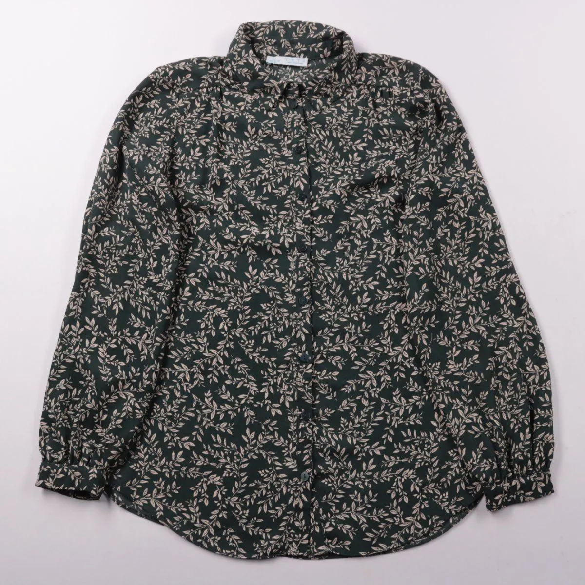 Женская блузка Primark с цветочным принтом на тёмной основе и застёжкой на пуговицы, рукав длинный. Подойдёт для офиса и повседневных образов с джинсами или юбкой. Лёгкая ткань быстро сохнет и проста в уходе.