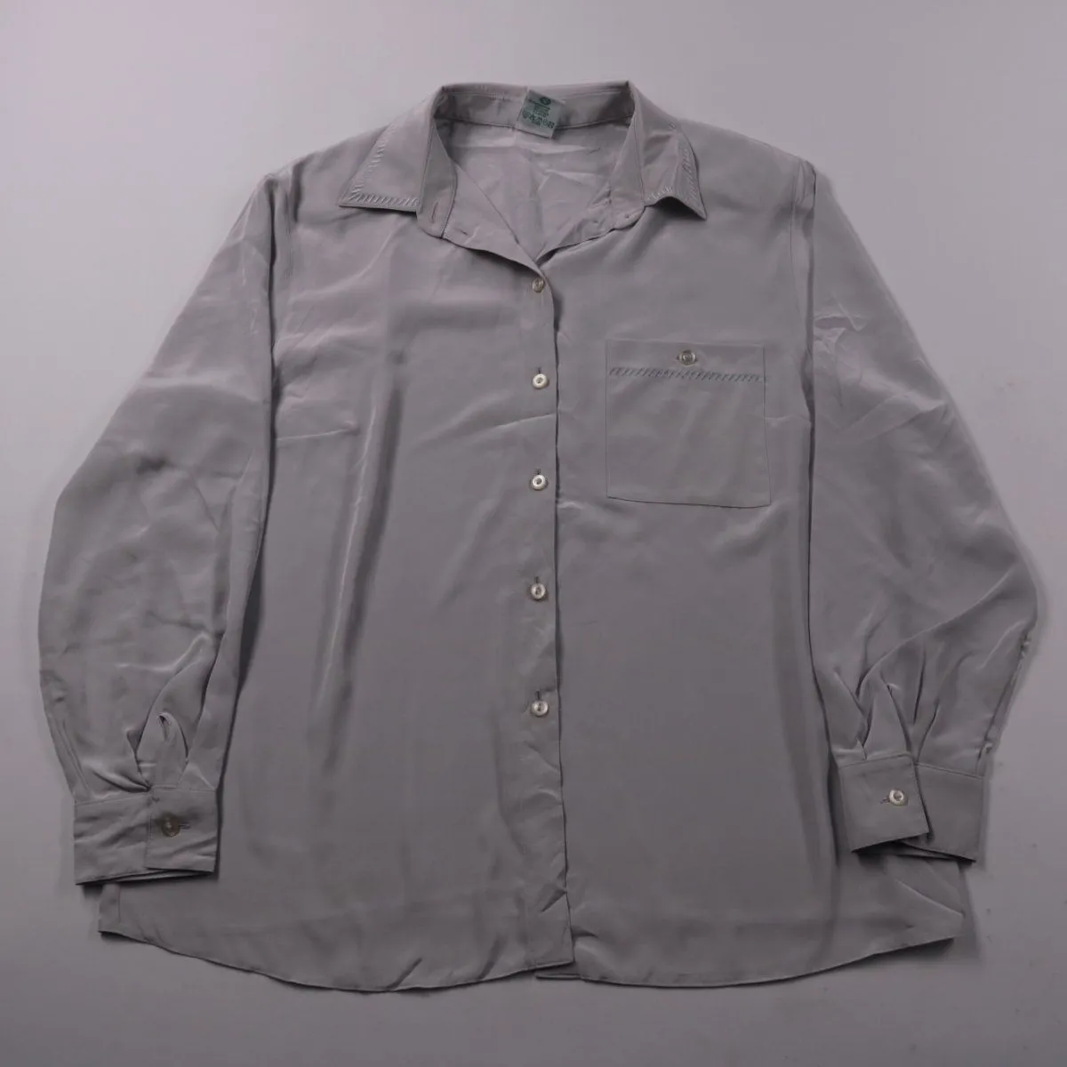 Блузка Canda светло-серого цвета из гладкого полиэстера, с классическим воротником и нагрудным карманом. Подойдёт для офиса и повседневных образов, легко сочетается с брюками и юбками. Материал почти не мнётся и быстро сохнет после стирки.