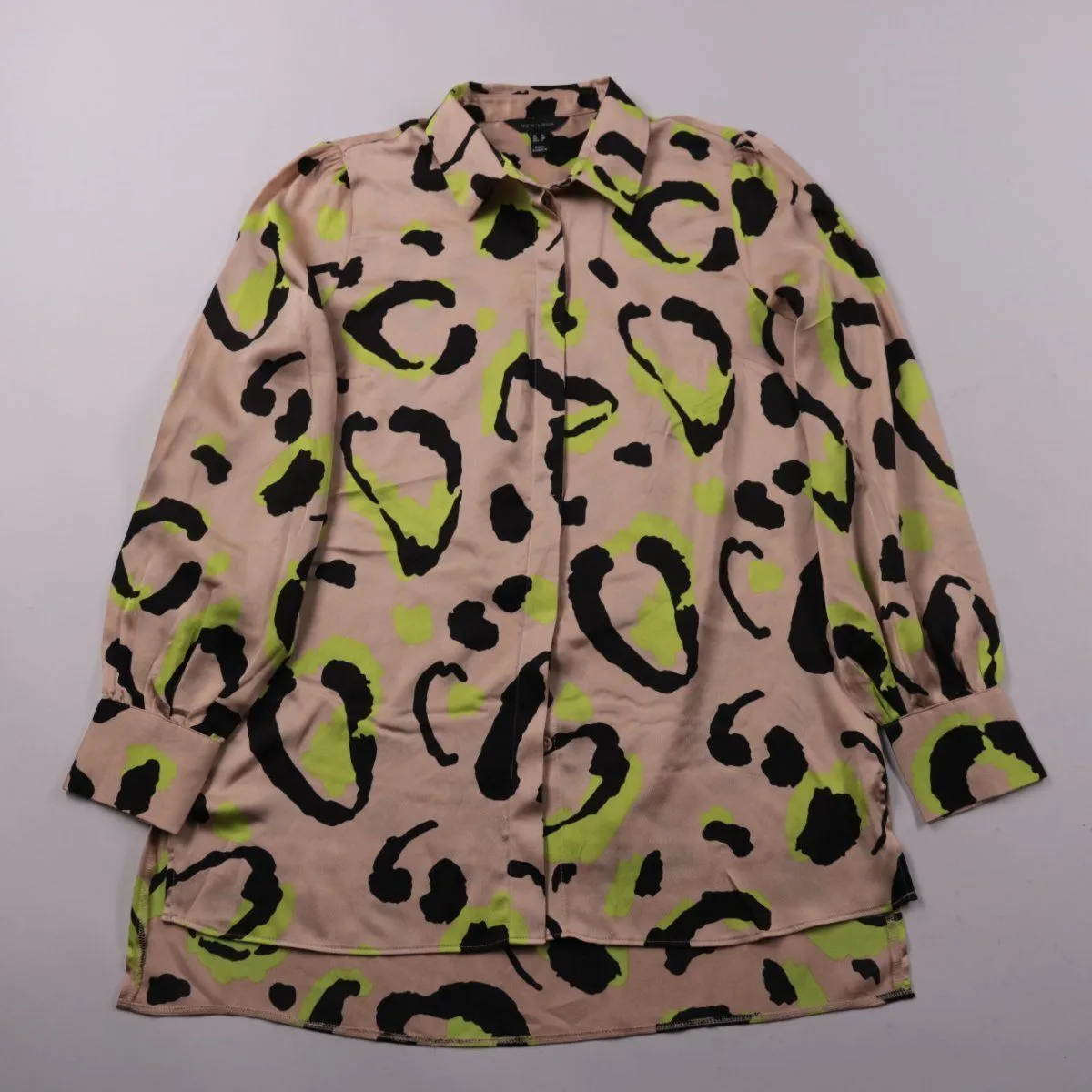 Женская блузка New Look с отложным воротником и длинными рукавами, на пуговицах. Яркий абстрактный принт на бежевом фоне подойдёт для повседневных образов и офиса. Лёгкая ткань и свободный крой обеспечивают комфорт в течение дня.