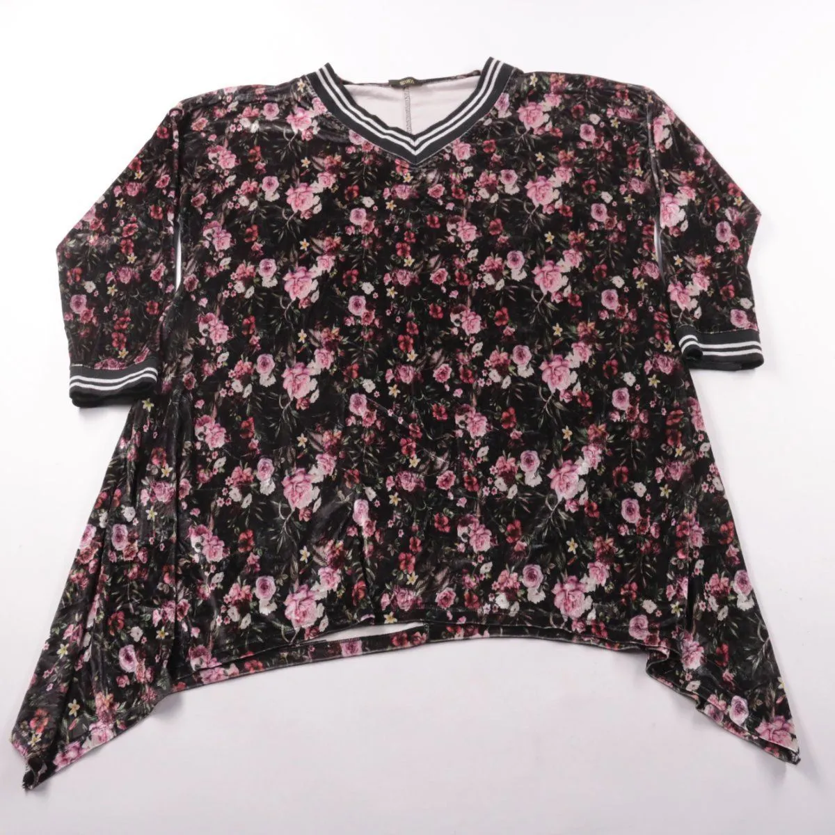 Блузка WAWA с цветочным принтом и V-образным вырезом с контрастной отделкой. Подойдёт для повседневных образов и на выход, хорошо сочетается с джинсами и юбками. Свободный крой не сковывает движения и комфортен в носке.
