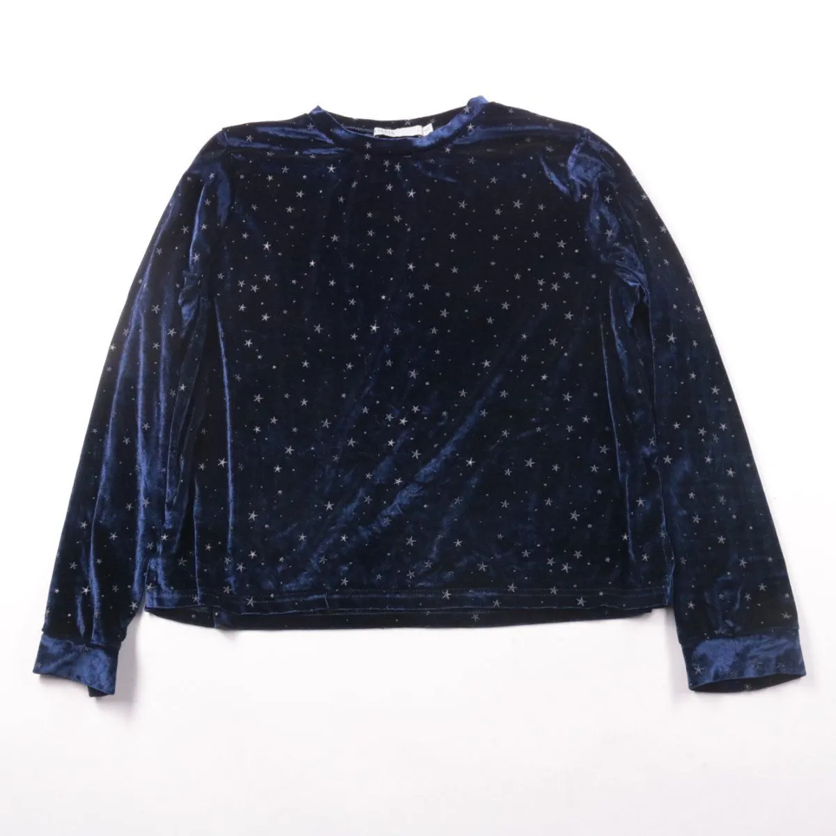 Женский свитшот Oasis из мягкого велюра тёмно-синего цвета с принтом звёзд. Подойдёт для повседневных образов и прохладной погоды в межсезонье. Ткань приятная к телу и хорошо смотрится за счёт бархатистой фактуры.