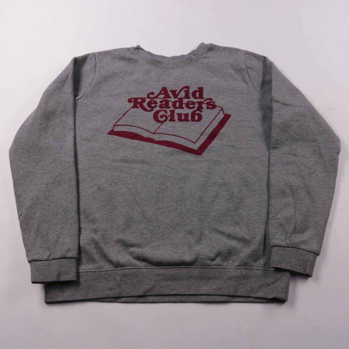 Серый свитшот Joanie с принтом «Avid Readers Club» на груди. Подойдёт для повседневных образов и комфортной носки в прохладную погоду. Трикотаж хорошо сочетается с джинсами и брюками и не требует сложного ухода.