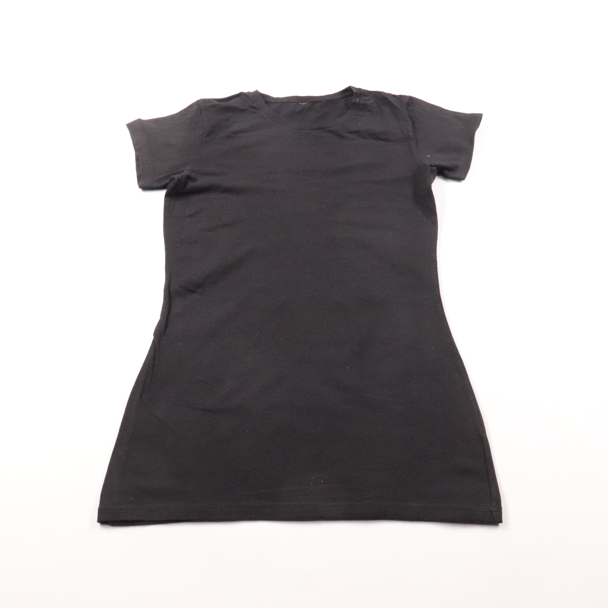 Женская чёрная футболка без принта с коротким рукавом и круглым вырезом. Подойдёт для повседневных образов, спорта и как базовый слой под жакет или кардиган. Практична тем, что легко сочетается с любыми цветами и вещами.