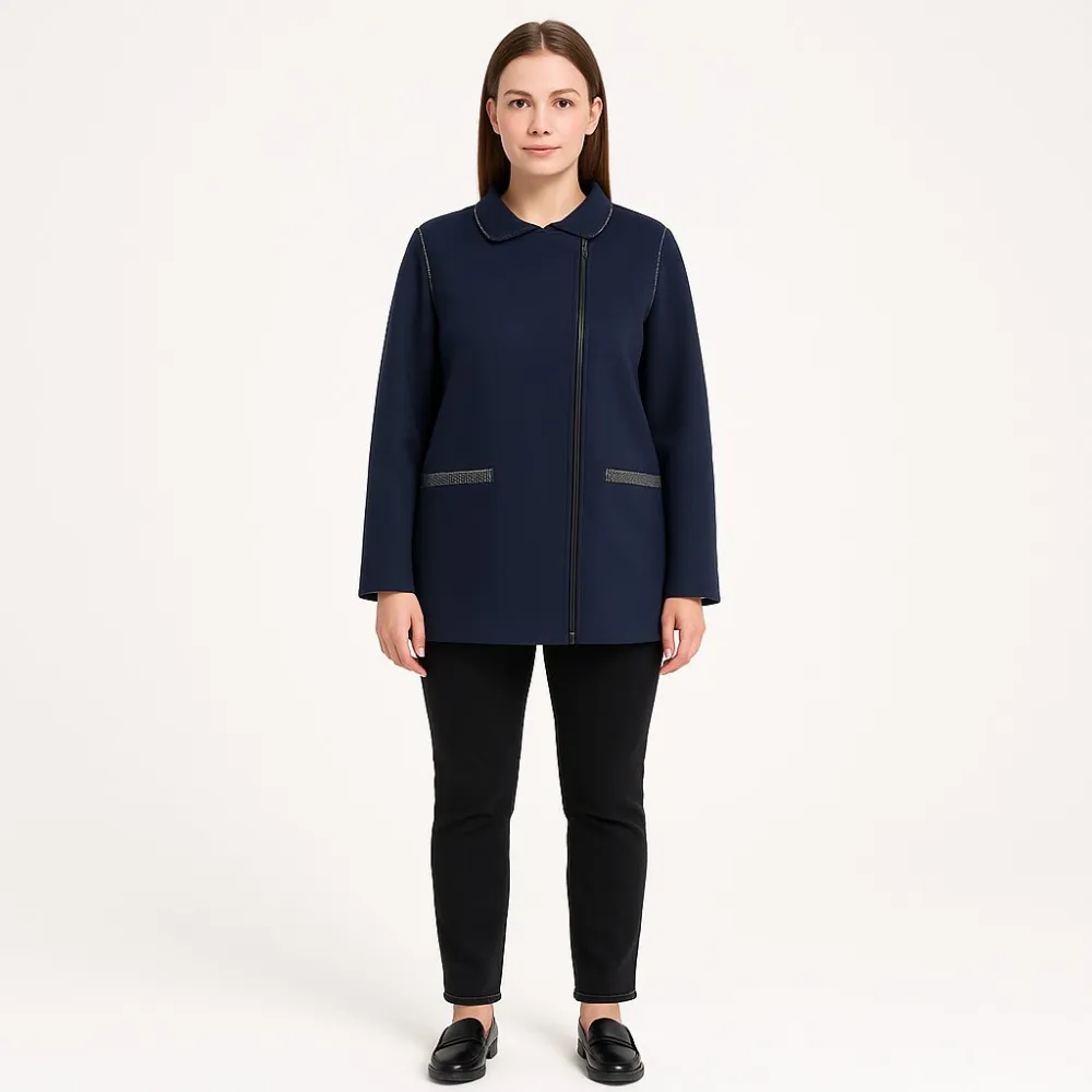 Трикотажный жакет D.Sport темно-синего цвета на молнии, с аккуратным воротником и карманами. Подойдет для офиса и повседневных образов в прохладную погоду, легко сочетается с базовыми брюками и джинсами. Плотный трикотаж хорошо держит форму и комфортен...