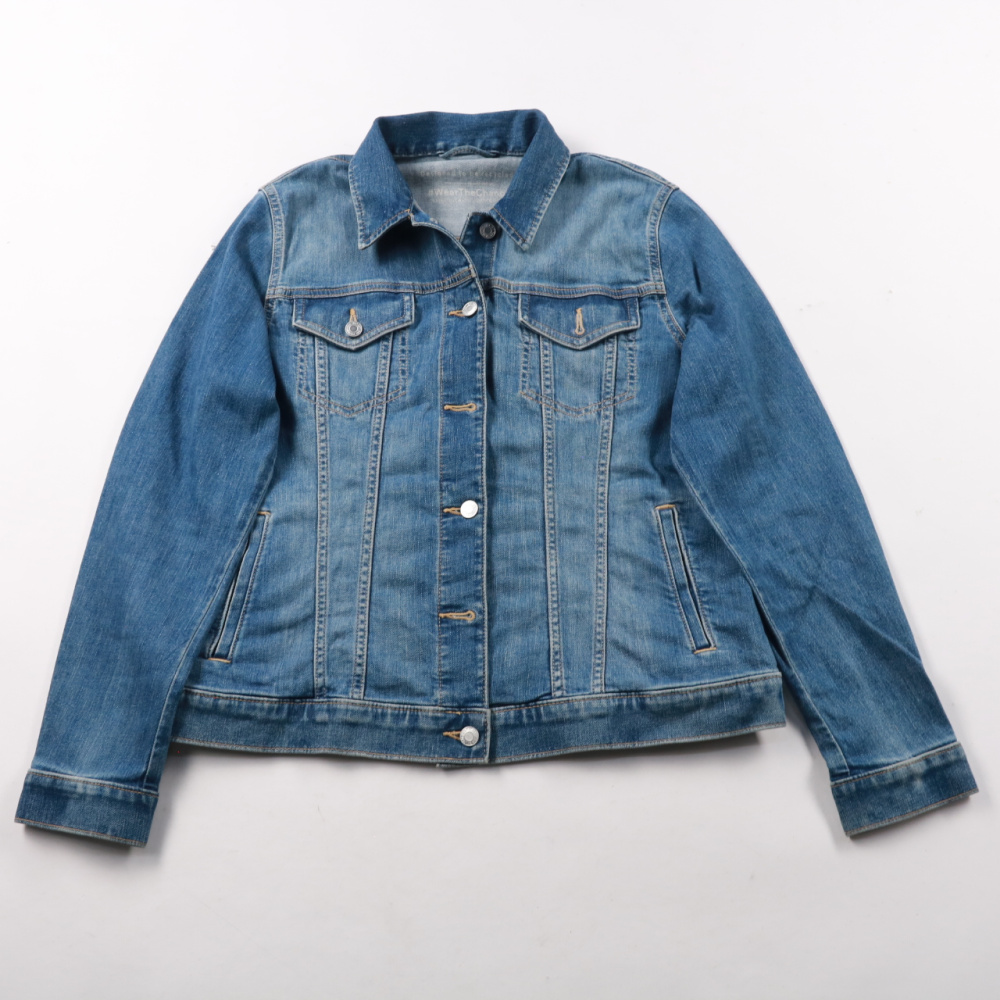 Женская джинсовая куртка C&A из синего денима с классическим воротником и нагрудными карманами. Подойдёт для демисезона и прохладных летних вечеров, хорошо сочетается с платьями, джинсами и юбками. Плотная ткань со стрейчем (хлопок с эластаном) комфорт...